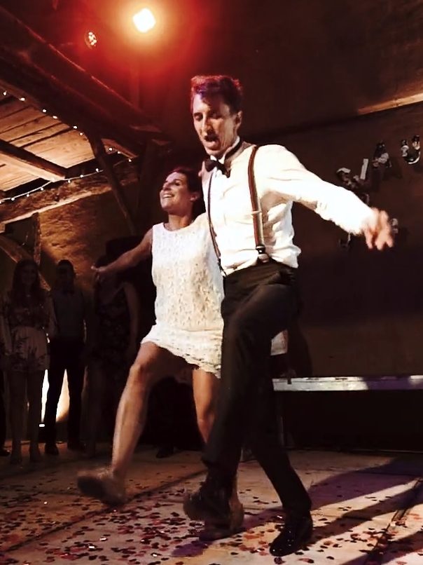 À l’heure où j’écris ces lignes, il s’en est déjà passé du temps depuis ce mariage mais comment l’oublier ! Un lieu magnifique, des invités au rendez-vous, une ambiance comme je n’avais jamais ressenti auparavant et des mariés hors du commun. J’aime discuter de ce que les mariés ont prévu comme première danse, c’est un moment de tendresse ou parfois joyeux en fonction du style choisi. Ici, ils m’ont prévenu d’entrée de jeu qu’ils faisaient du rock; étant particulièrement adepte de cette danse de salon, j’avais hâte de voir ça. Et je n’ai pas été déçu, en plus d’être des amoureux hors pair, ils sont également de très bons danseurs. Ambiance assurée ! Leur témoignage Claudia – Jean-François une union de folie